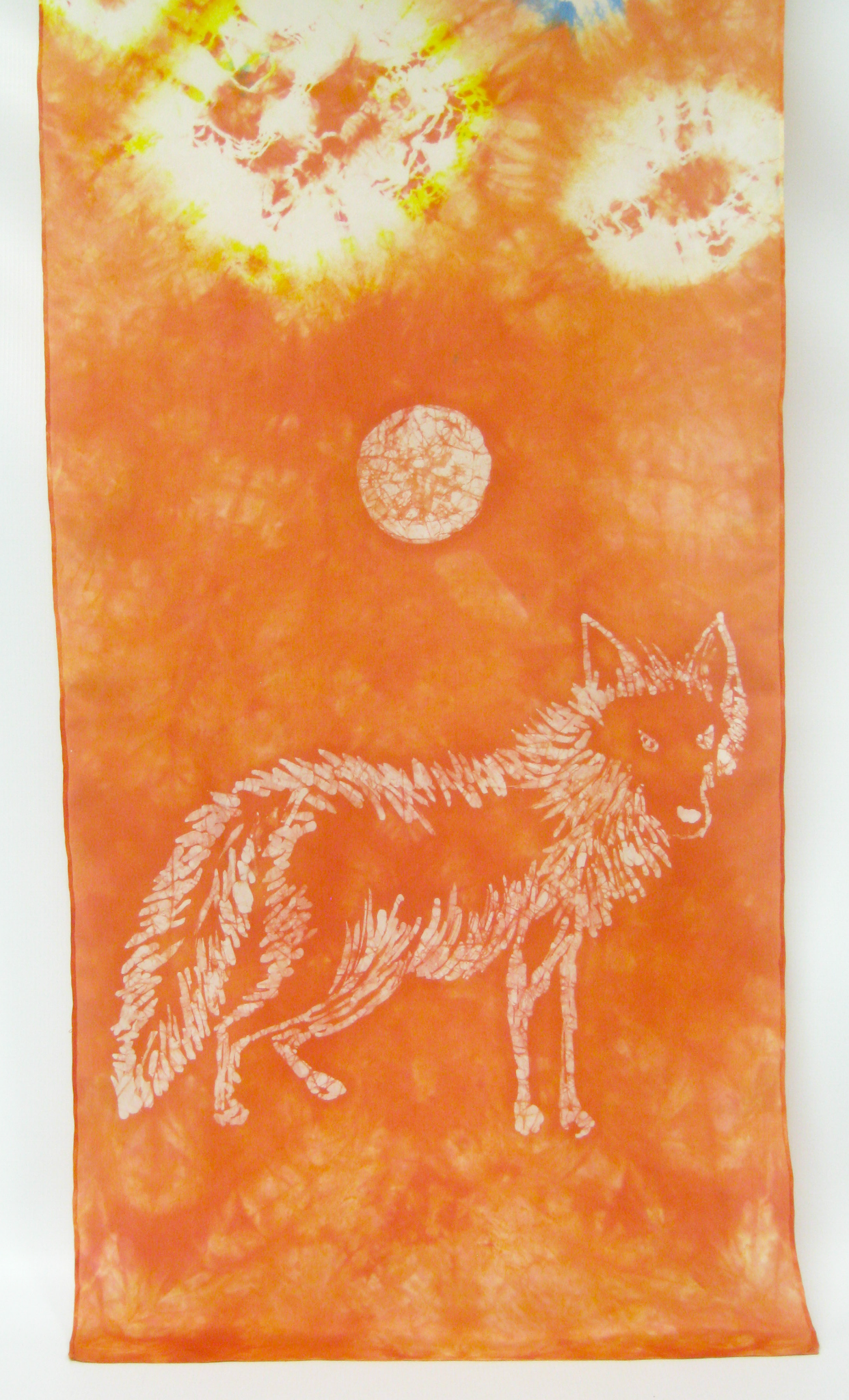 This hand painted silk scarf is done in the art of batik an ancient art using hot wax to create images on fabric.