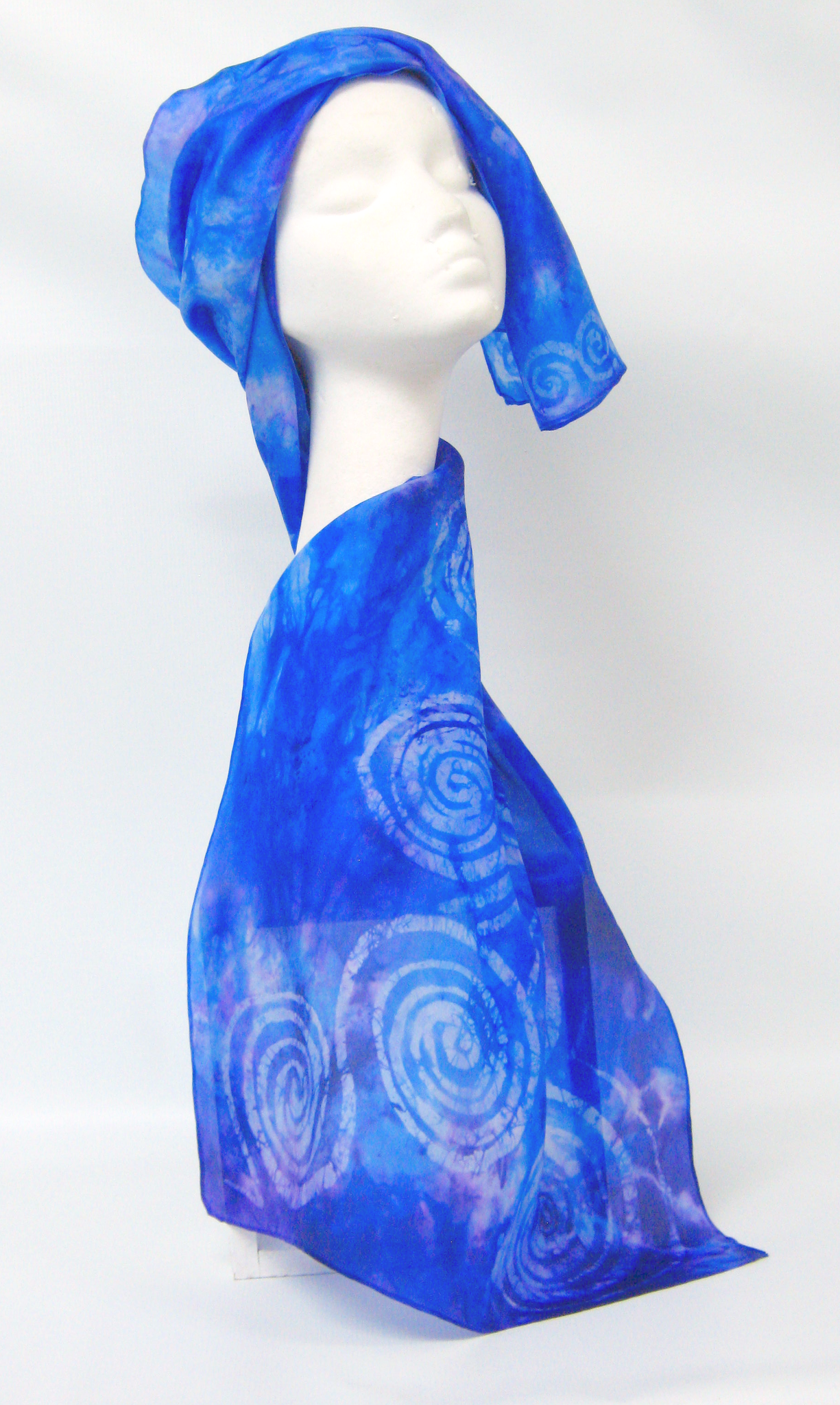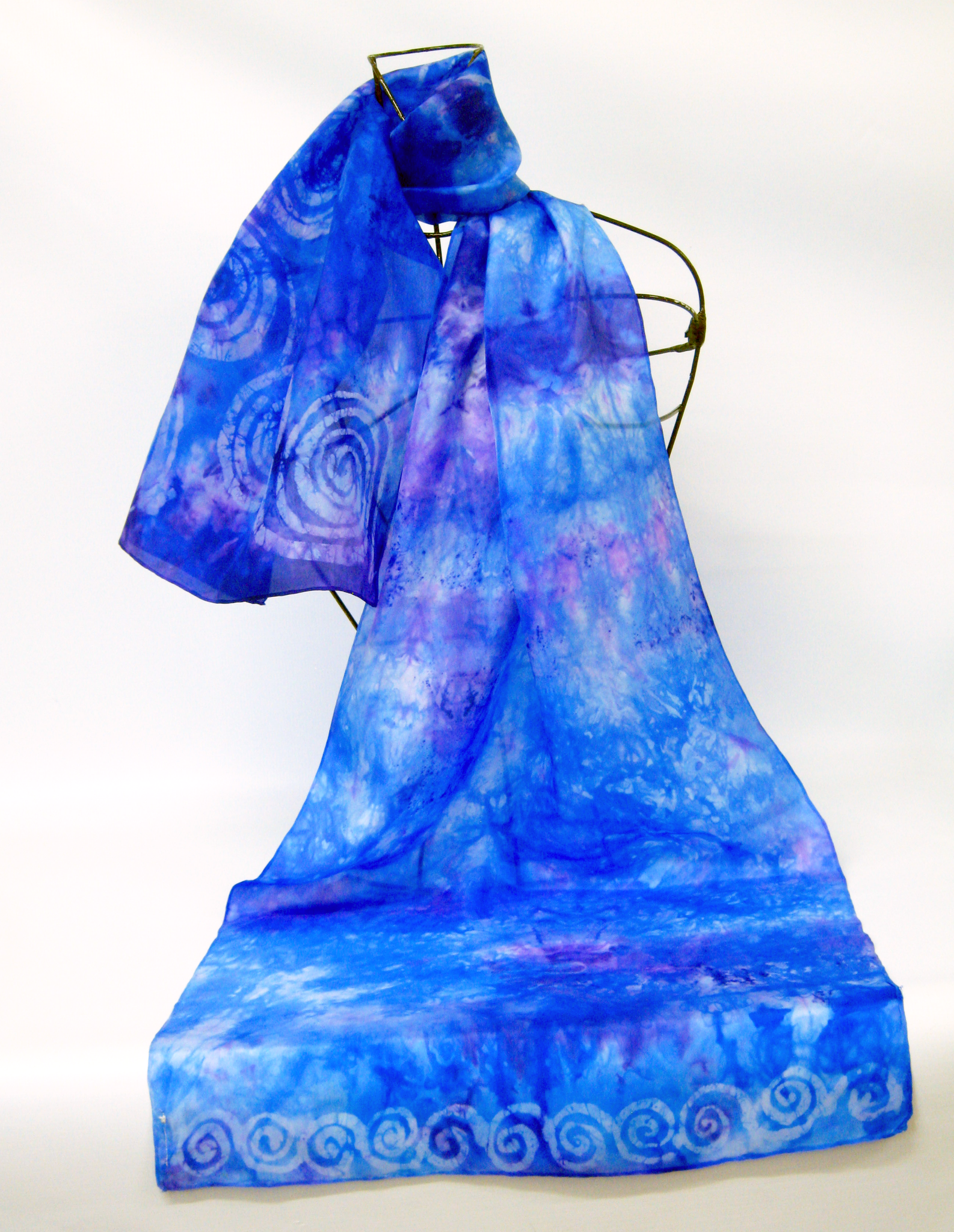 This hand painted silk scarf is done by Louise in the art of batik